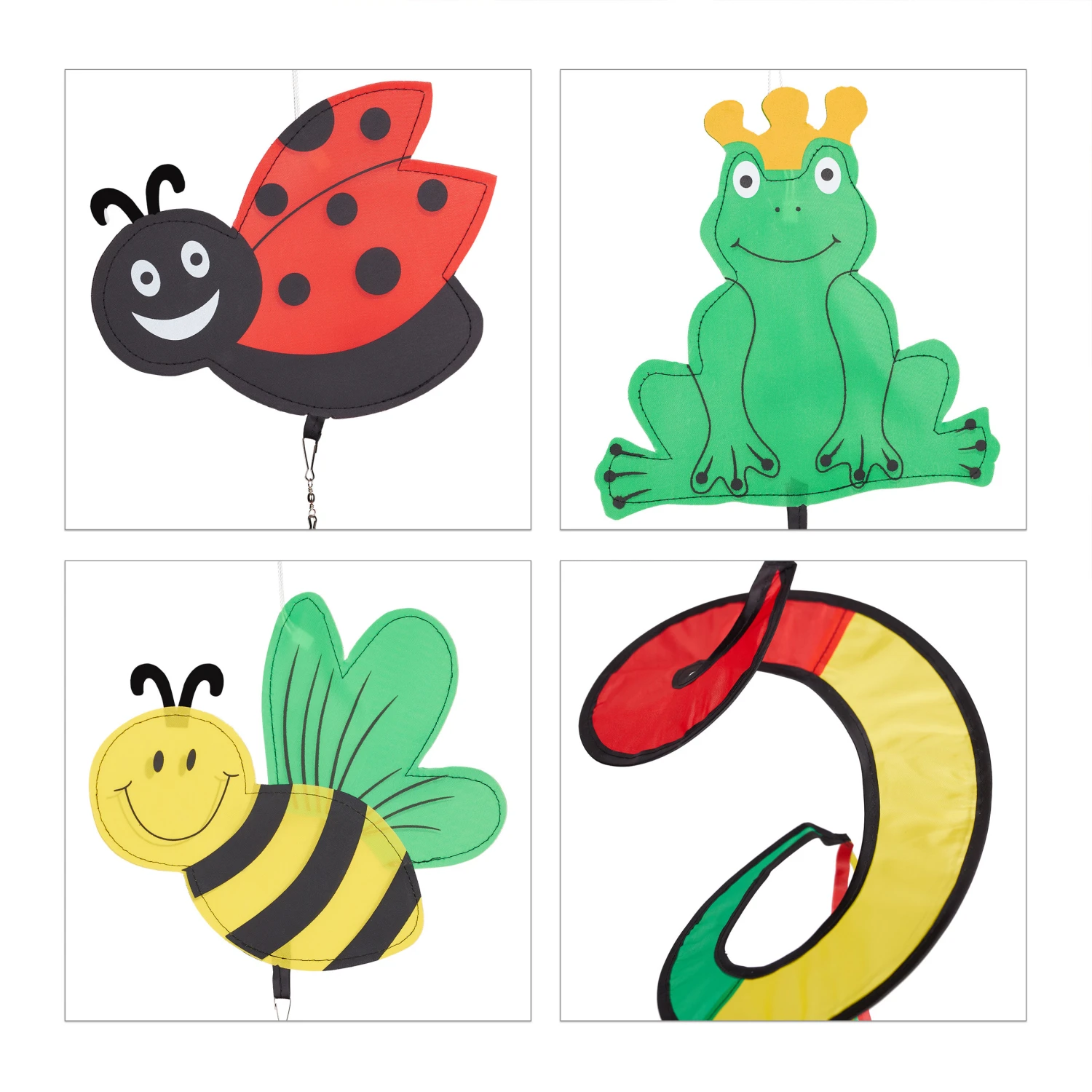 Mit diesen bunten Windspiralen im 3er Set setzt Du farbenfrohe Akzente in Deinem Garten, auf dem Balkon oder der Terrasse. Dazu können die Deko-Windspiele mithilfe der Schlaufe einfach an einem Ast oder ähnlichem aufgehängt werden. Bei Wind fangen die Spiralen an, sich zu drehen und erzeugen gemeinsam mit ihren Flatterbändern ein tolles Wind- und Farbenspiel. Mit ihren niedlichen Tiermotiven erfreuen die Balkon-Windspiele sowohl Kinder als auch Erwachsene.