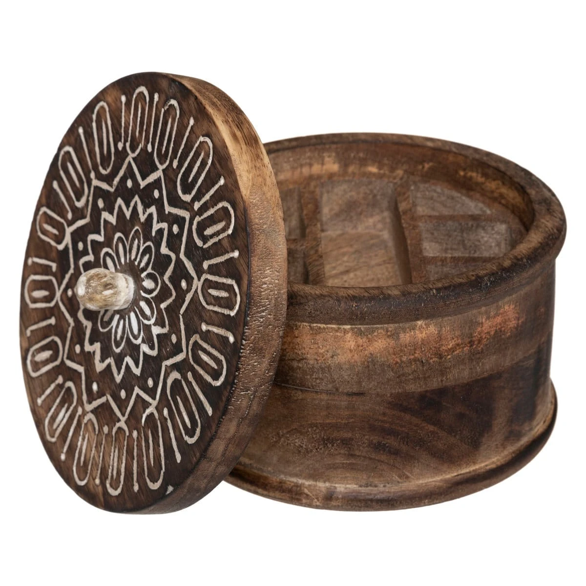 Holzkiste: Die NAM-NAM-Box wurde aus Mangoholz hergestellt. Dieses Material zeichnet sich durch Härte und Festigkeit aus, sodass Sie sicher sein können, dass es Ihnen jahrelang dienen wird.