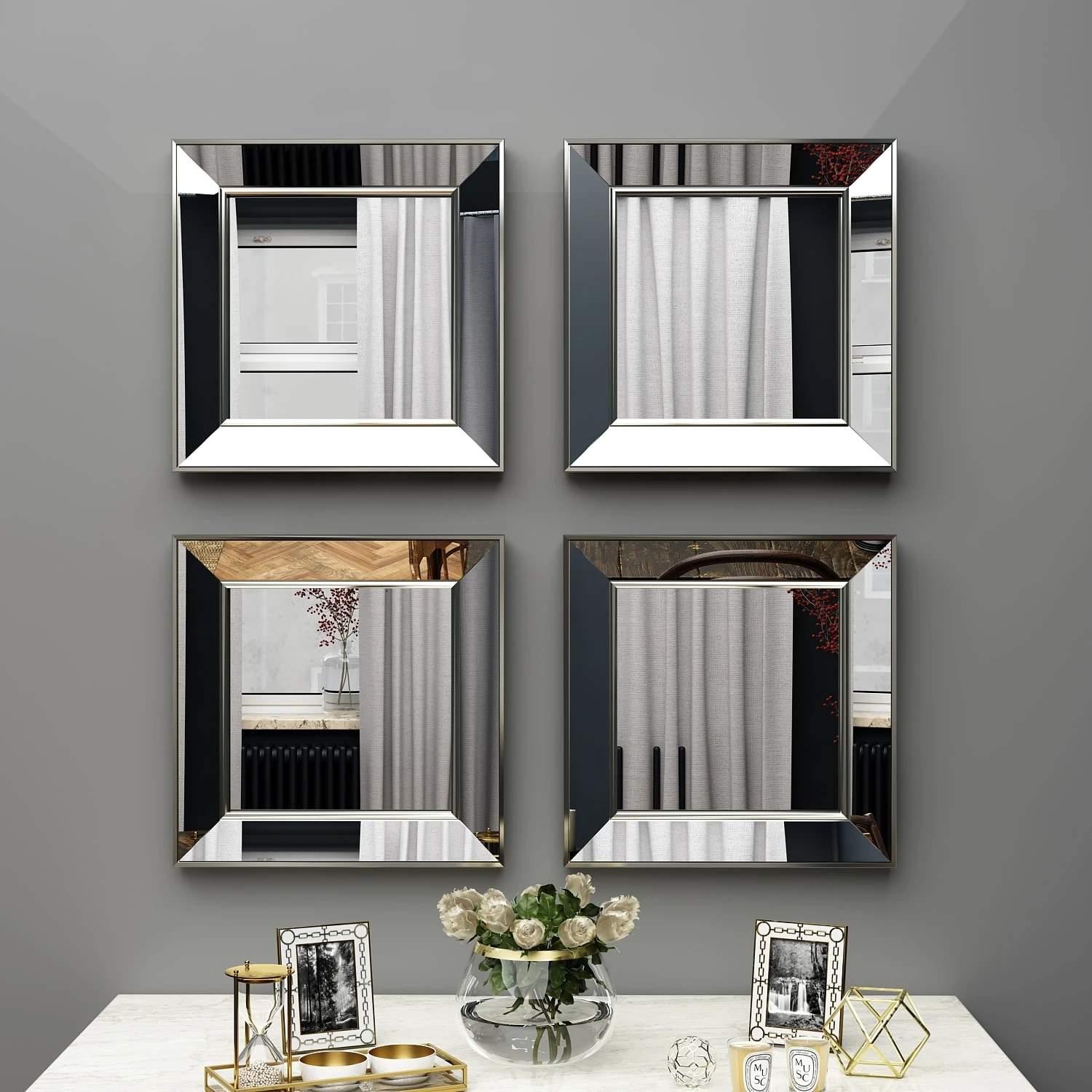 Spiegel Abel 4er 40x40cm Silber