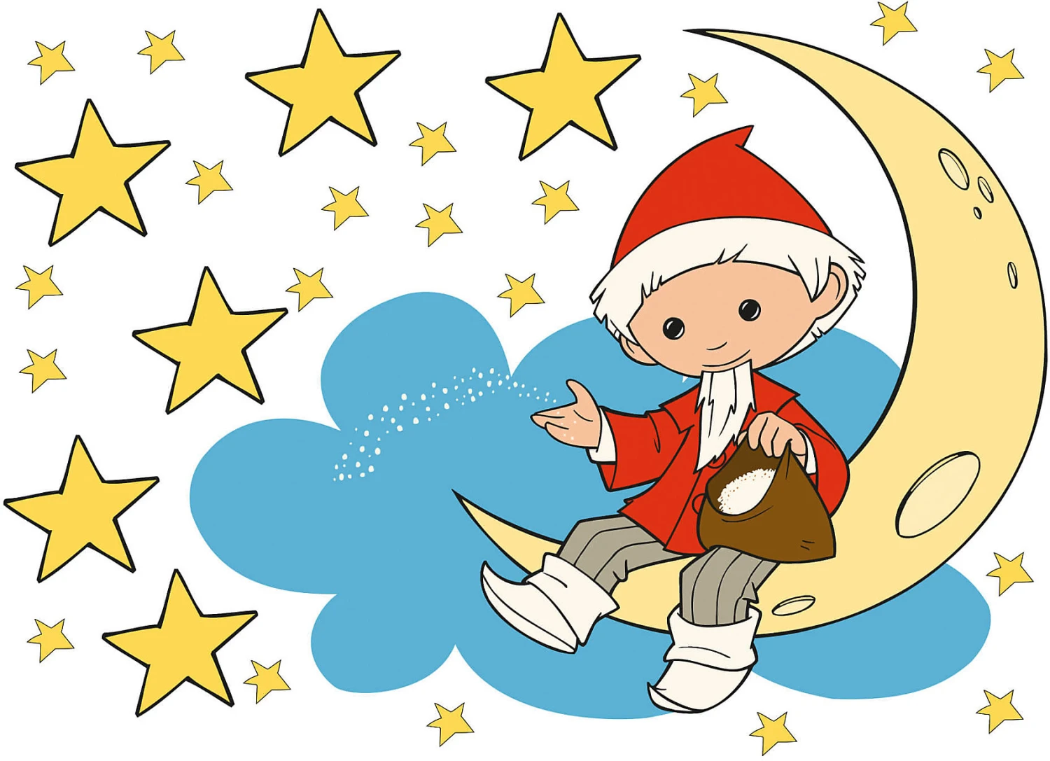 Gehört auch bei Ihnen der so bekannte „Sandmann“ zum täglichen Abendprogramm? Dann sollte er auf alle Fälle an der Wand Ihres Kinderzimmers nicht fehlen. Das Sandmännchen holt aus seinem kleinen Säckchen seinen Schlafsand hervor und schickt Ihr Kind in die schönste Traumwelt.