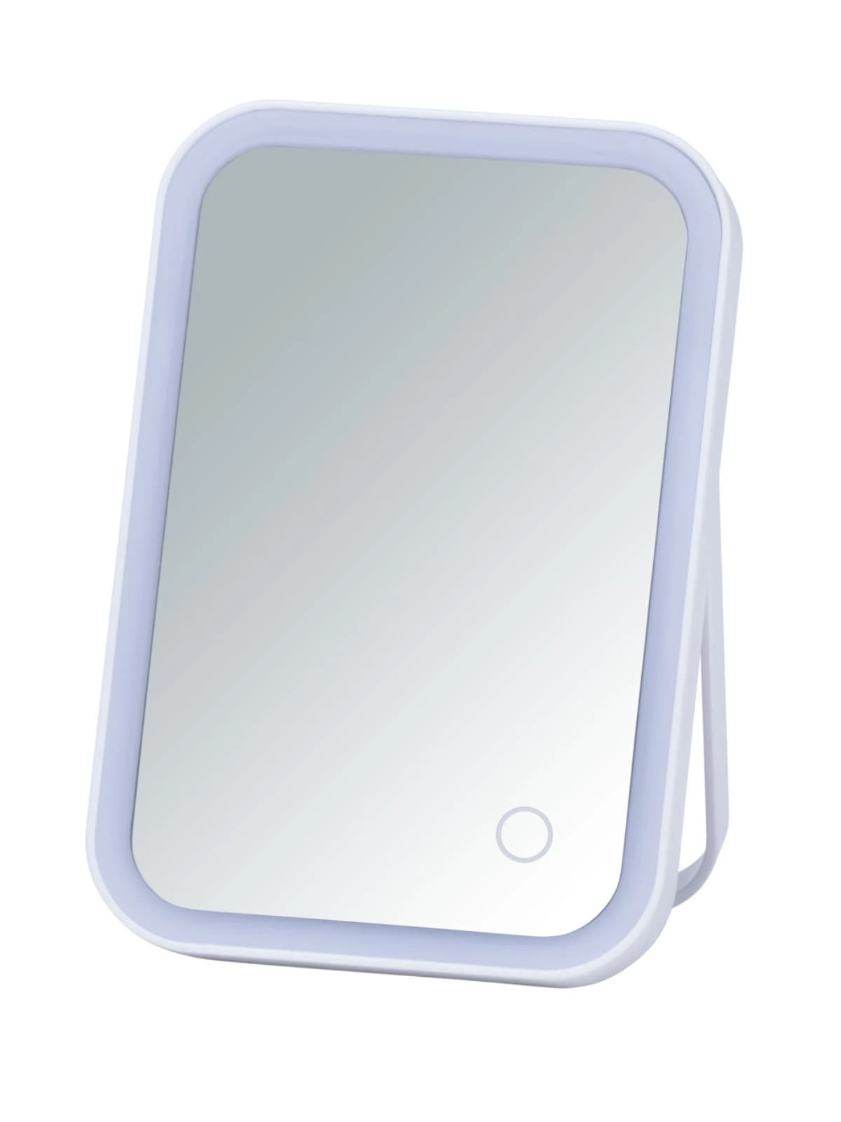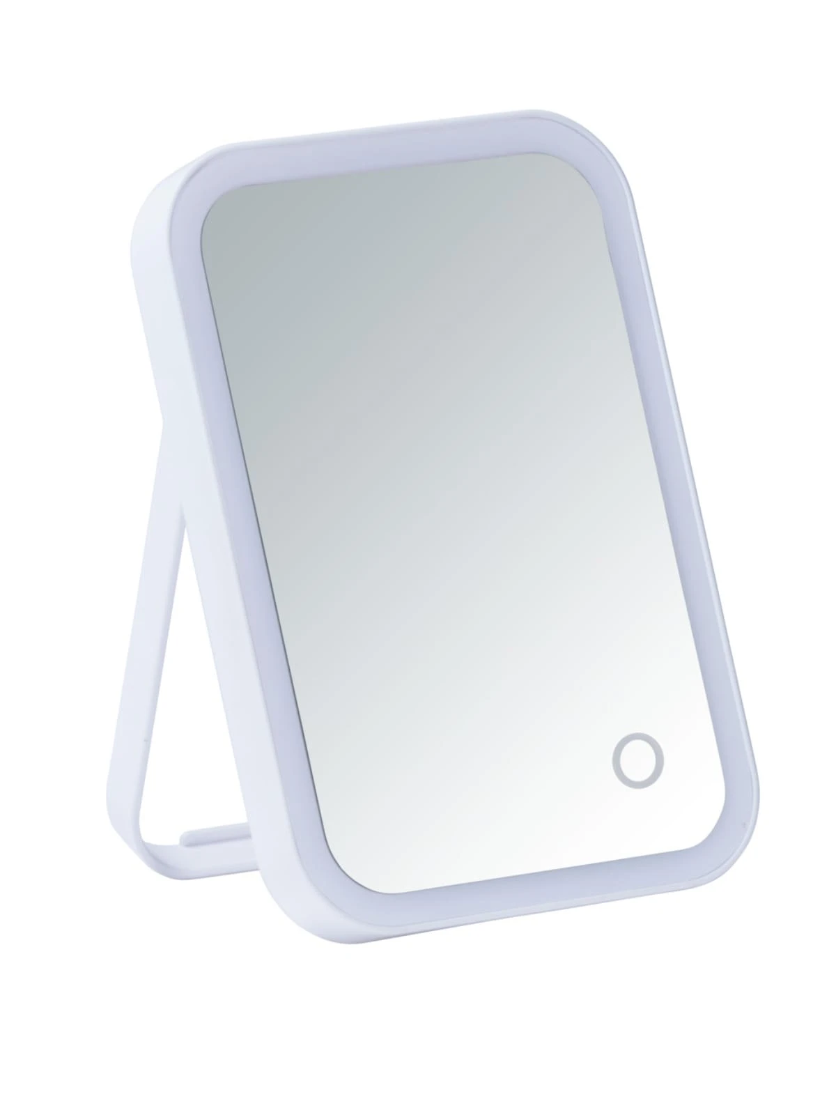 Der Leuchtspiegel ist aus stabilem Kunststoff gefertigt und in klassisch-schönem Weiß gehalten. Auf seinem Standbügel steht er stets sicher, kann aber auch problemlos zusammengeklappt und mit auf Reisen genommen werden.